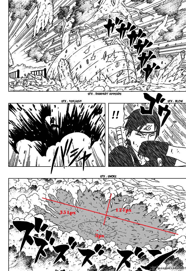 Wiz: By measuring the length of the wall and comparing to the height and width of the Uchiha Hideout and later comparing to the wall to the radius of the scattered fragments after assuming the building to be 80% hollow, we can measure the destruction Sasuke caused using Kirin is exactly at 600 megatons of TNT.